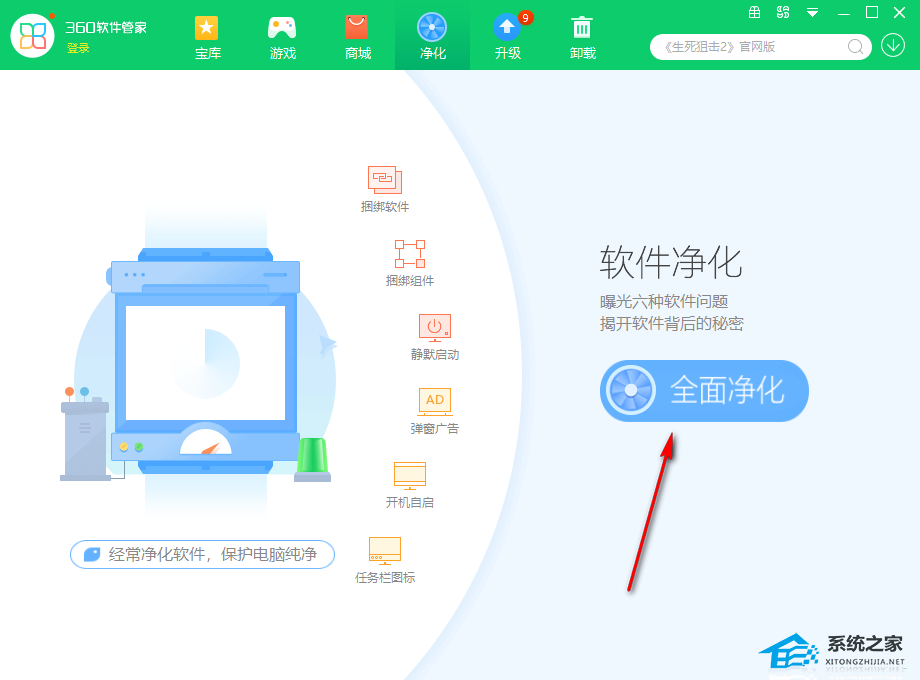 3、接着就会进入到净化的页面中,在该页面中将【全面净化】这个功能进行点击。