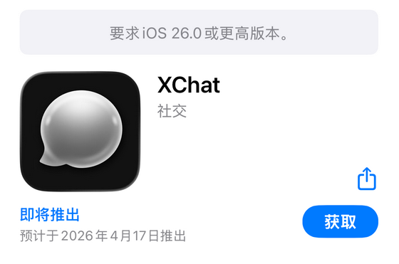 不过,XChat 的安装门槛并不低。根据 App Store 信息显示,该应用仅支持 iOS 26 及 iPadOS 26 设备,部分未升级系统的用户将无法体验。